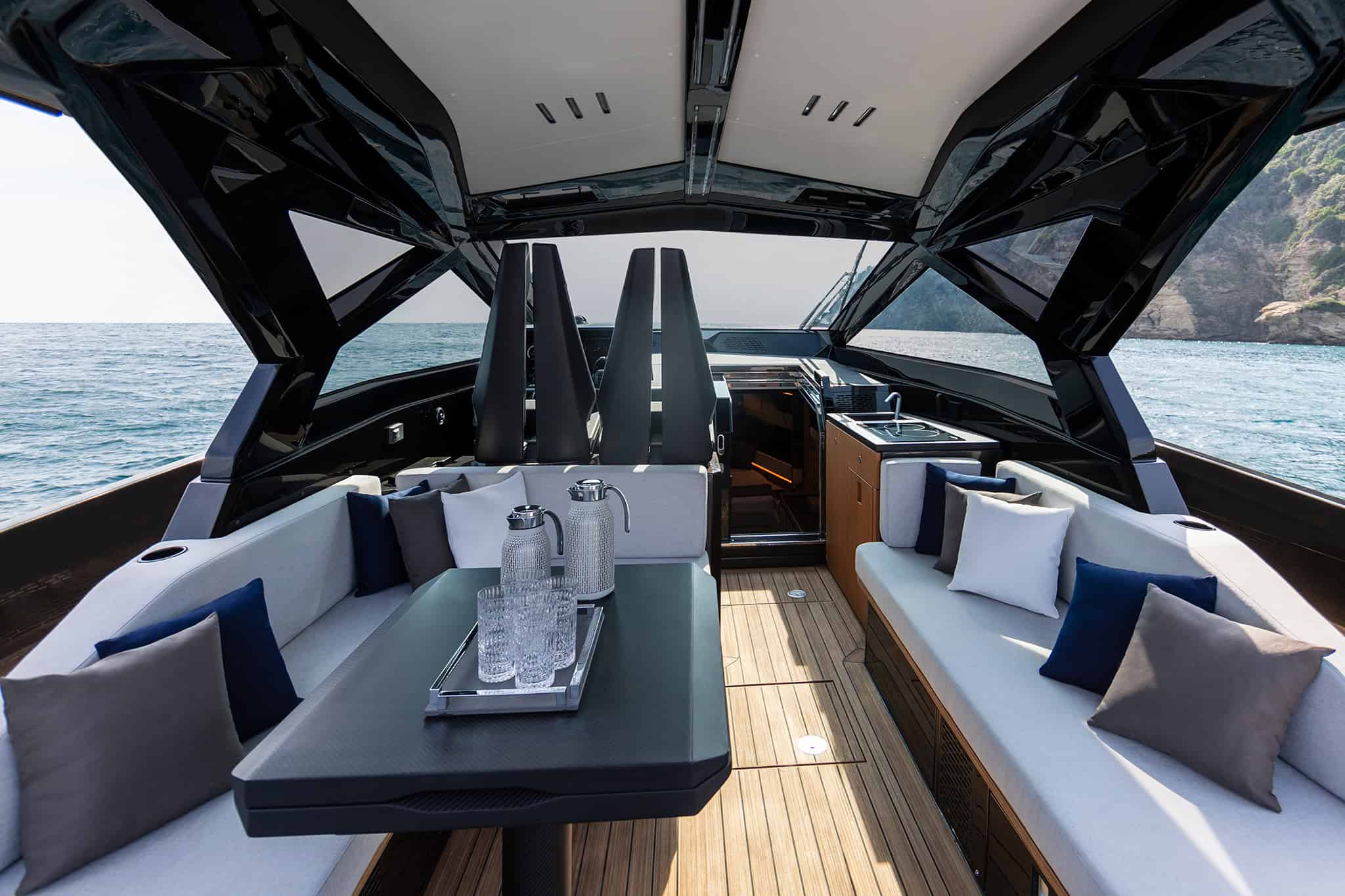 The LussoMare fleet centres around two exceptional Italian-designed Wally yachts – the Wally 43 and Wally Power 50 – modern and beautifully appointed, these yachts offer expansive sun-lounging areas, refined social spaces, and premium onboard amenities, delivering a smooth and luxurious experience in all conditions.