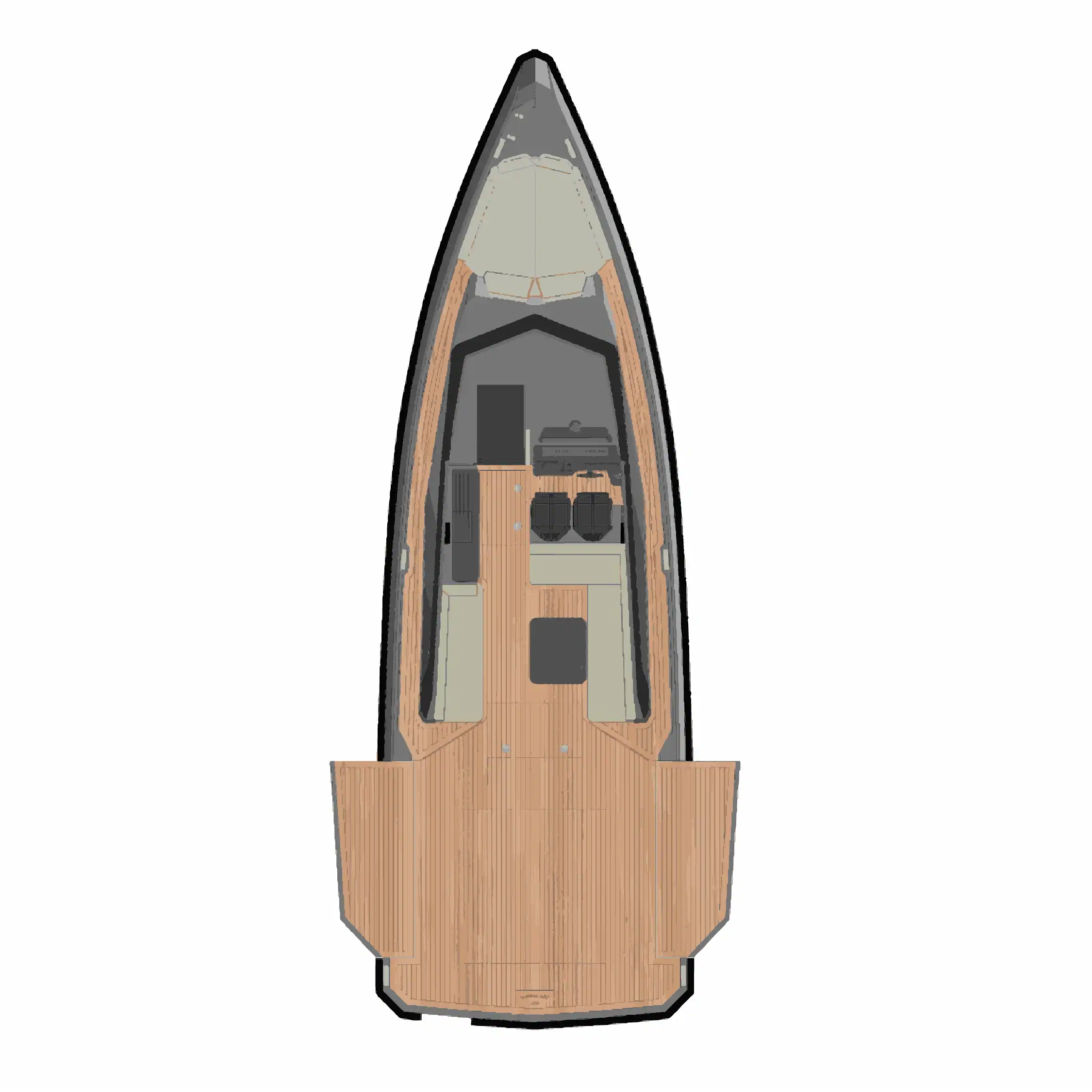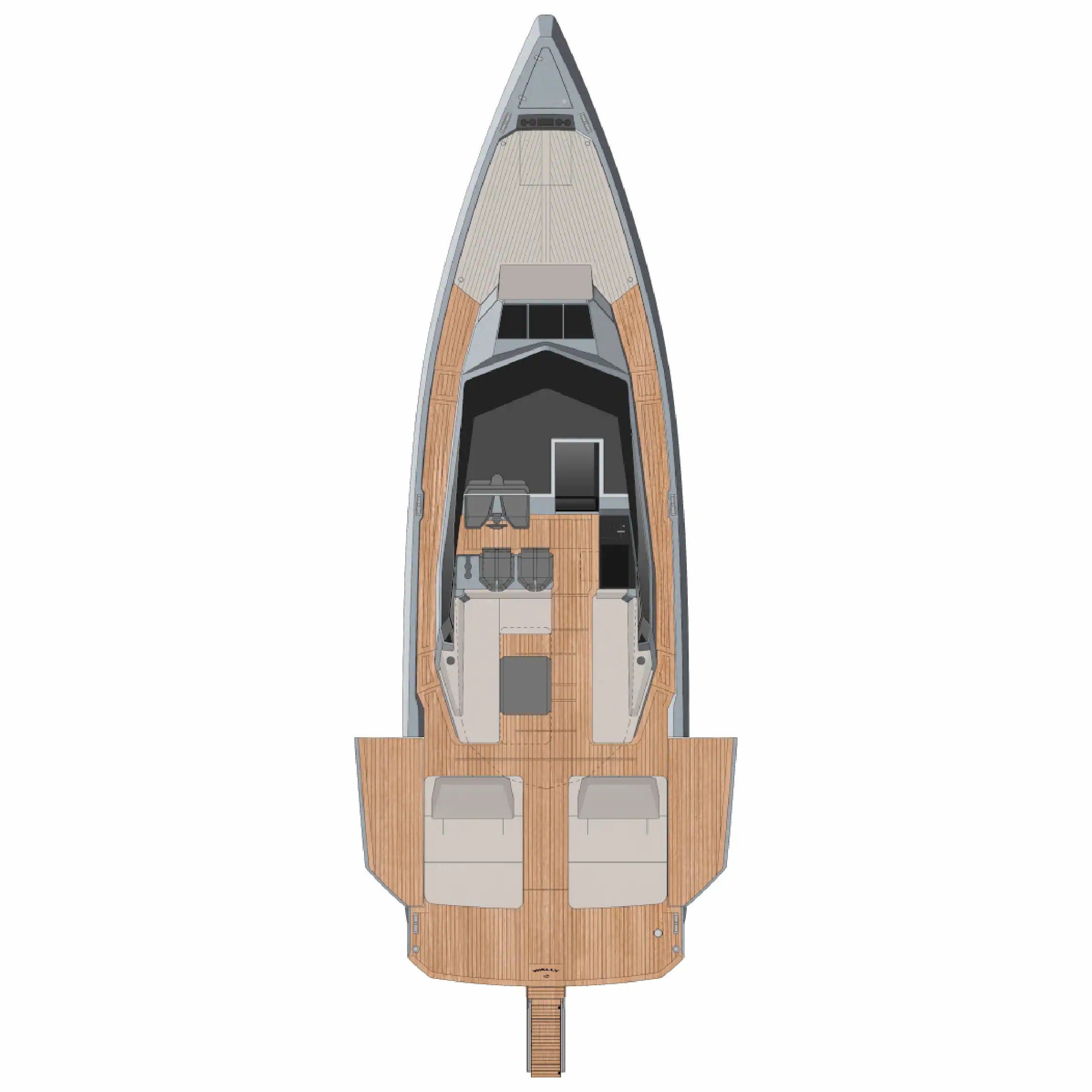 The Wallypower 50, a striking blend of minimalist design and high performance. With expansive sun beds, a social cockpit, and Wally’s signature sculpted silhouette, it’s built for effortless day cruising. Inside, a refined double cabin and elegant bathroom offer comfort for extended space. Powered by Volvo IPS drives for smooth, responsive handling, the Wallypower 50 delivers both speed and style in equal measure.