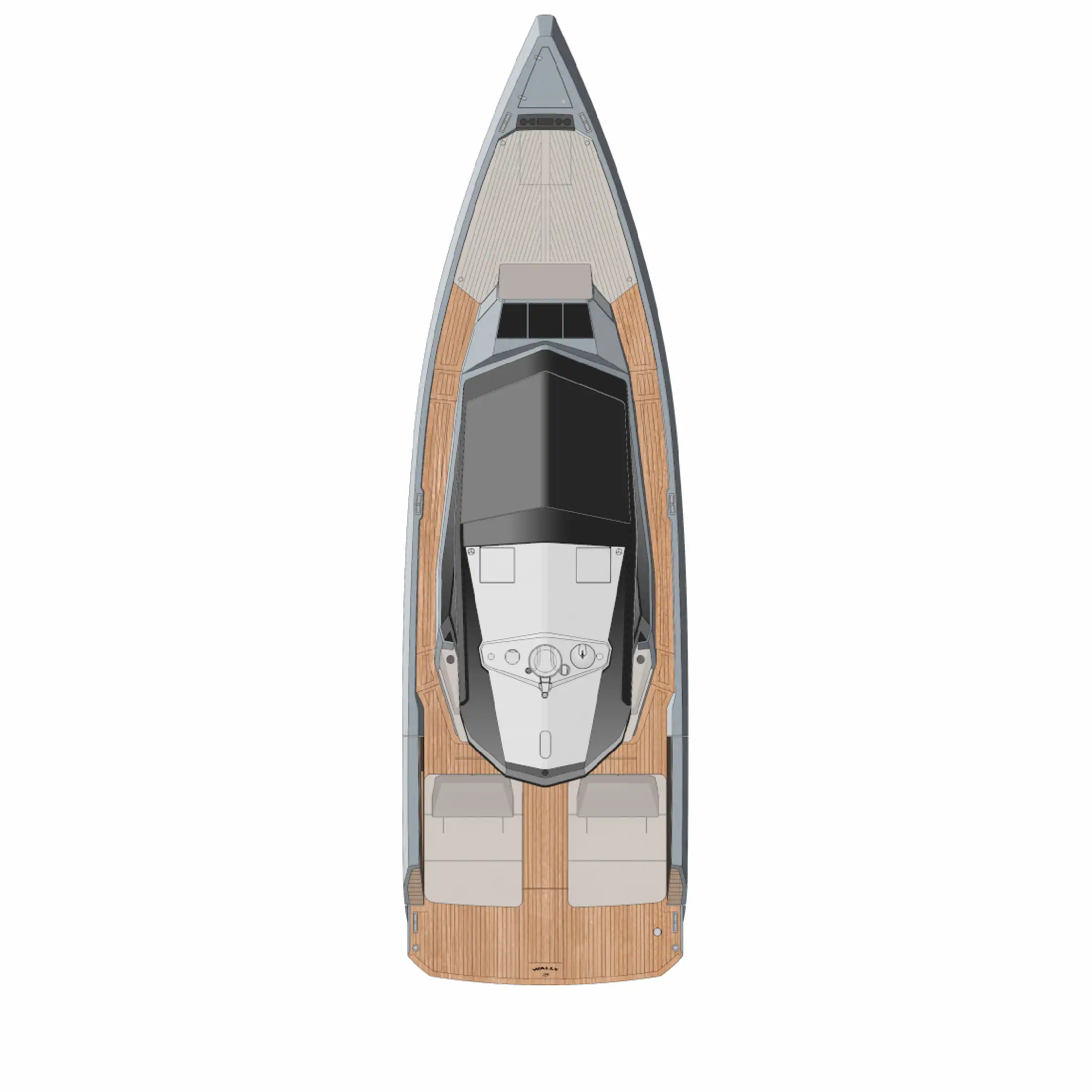 The Wallypower 50, a striking blend of minimalist design and high performance. With expansive sun beds, a social cockpit, and Wally’s signature sculpted silhouette, it’s built for effortless day cruising. Inside, a refined double cabin and elegant bathroom offer comfort for extended space. Powered by Volvo IPS drives for smooth, responsive handling, the Wallypower 50 delivers both speed and style in equal measure.